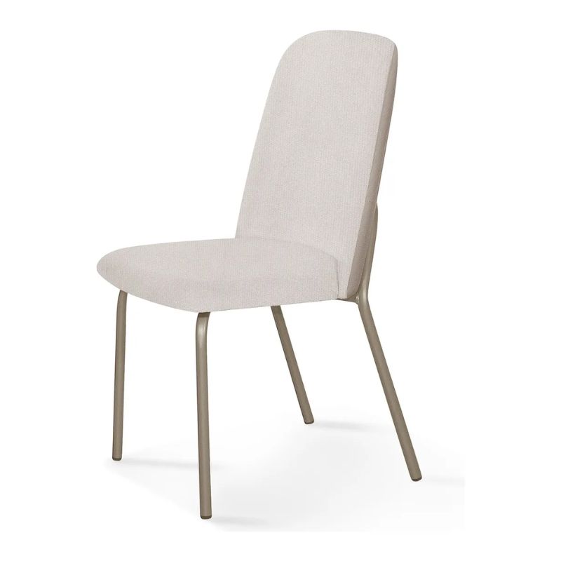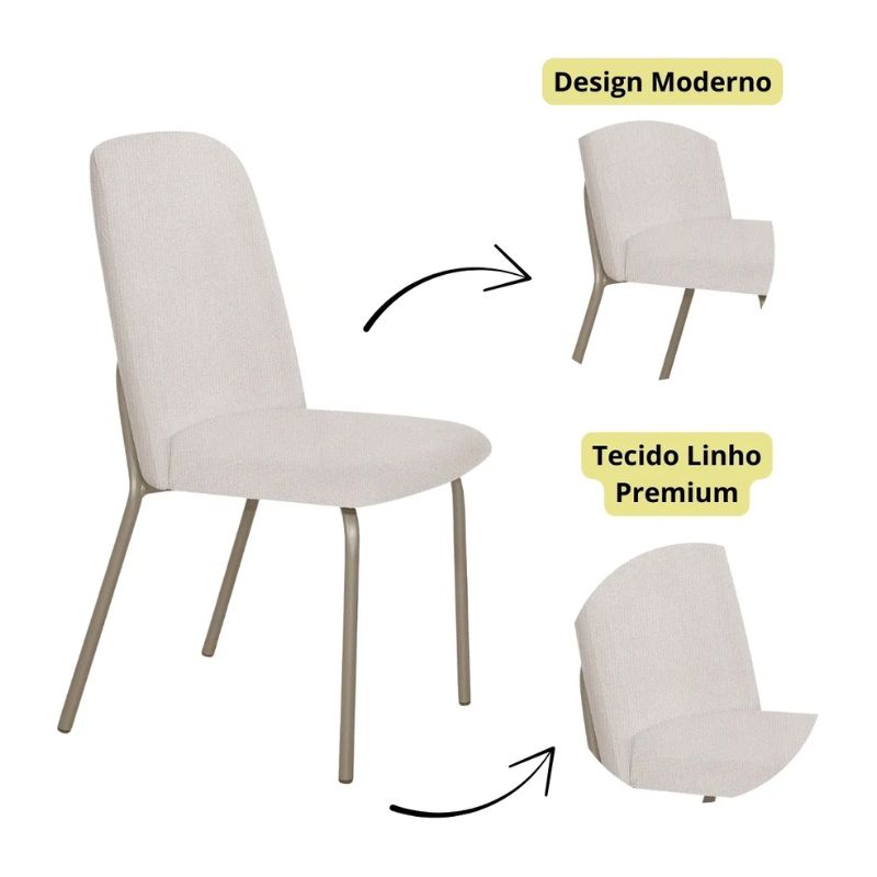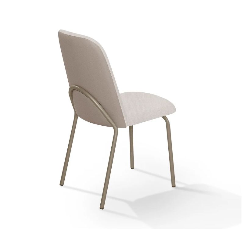 A Cadeira Dubai é fabricada com a estrutura em aço, nas opcões de cores champagne e preto, com assento e encosto estofados no tecido linho, as costas da cadeira em couro sintético. Proporciona conforto e sofisticação para o ambiente.