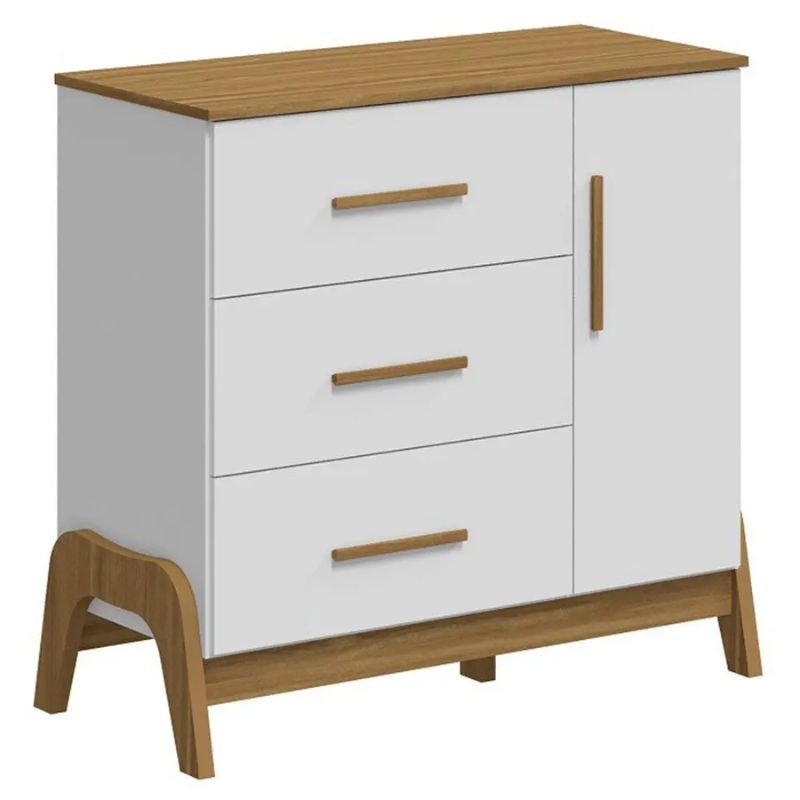 Comoda Peroba Guti Retro 1 Porta – Branco Brilho/Amendoa