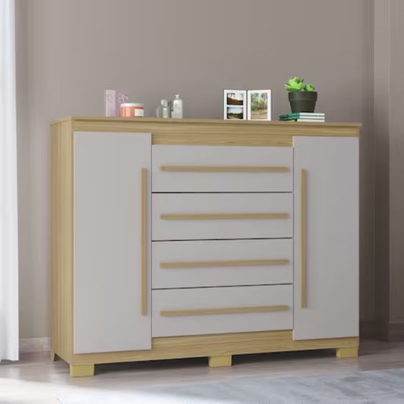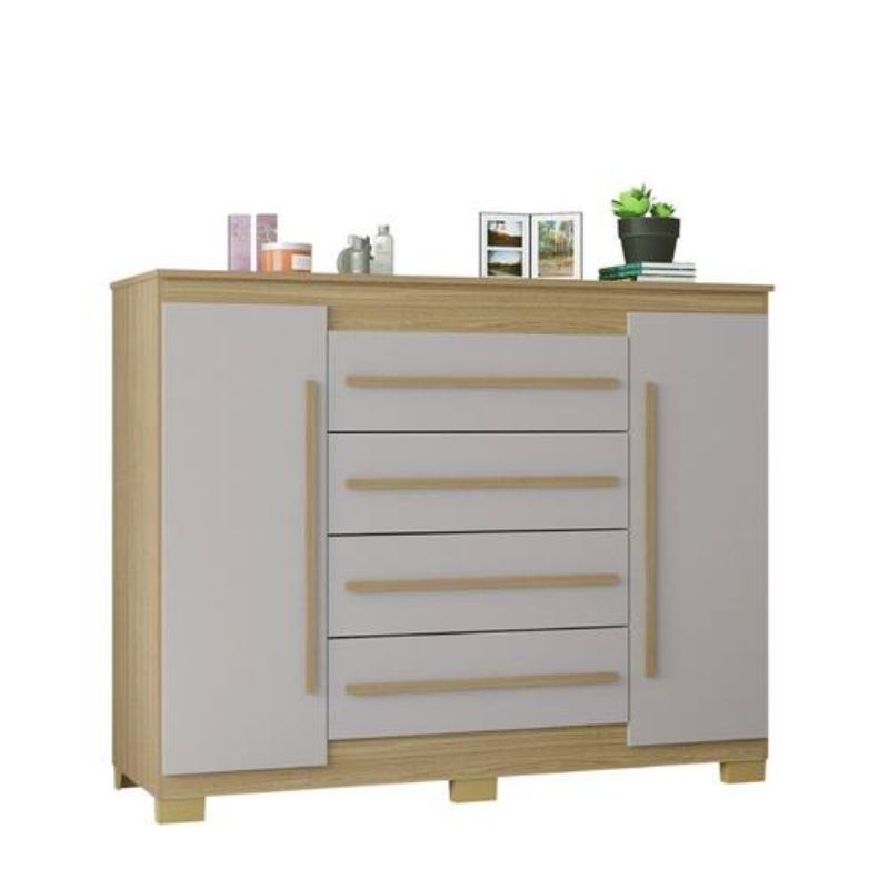 Comoda Poquema Valencia 2 Portas 4 Gavetas – Damasco/Off White