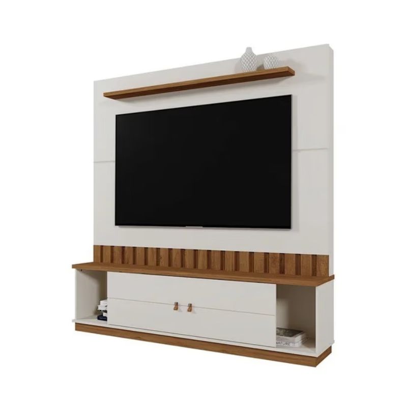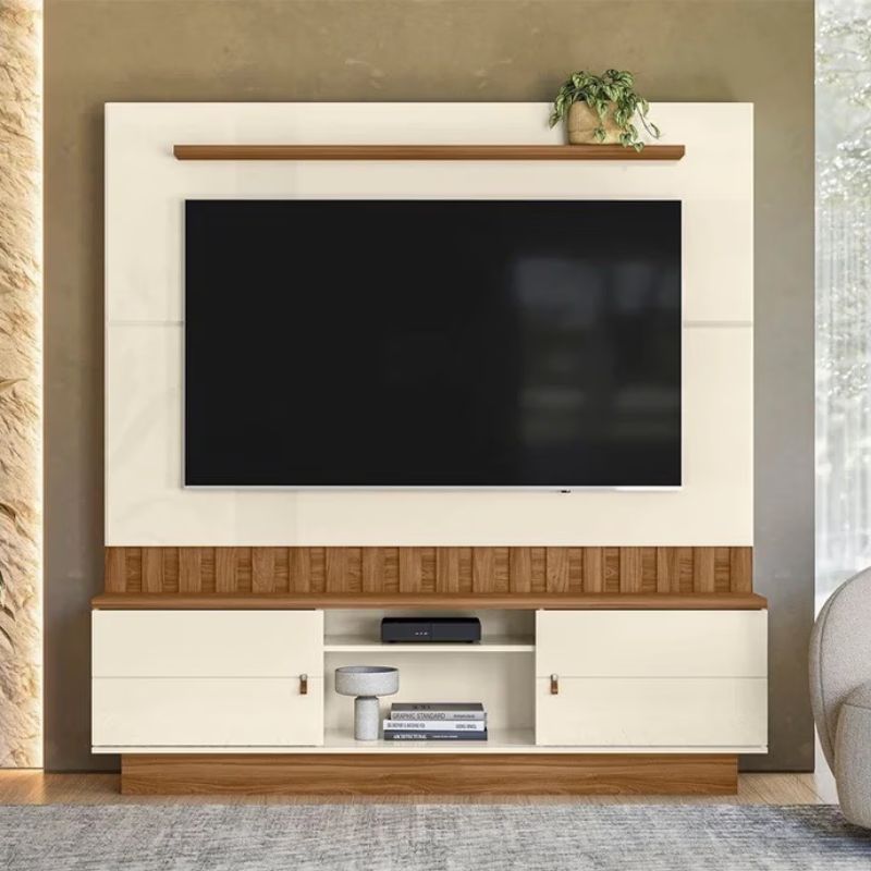 Transforme sua sala com o Home Florianópolis, uma peça de decoração moderna que une elegância, funcionalidade e um toque artesanal inspirado no estilo açoriano e na leveza do litoral catarinense. O painel em tons Off‑White com ripas em Amêndoa cria um contraste sofisticado que valoriza qualquer ambiente.