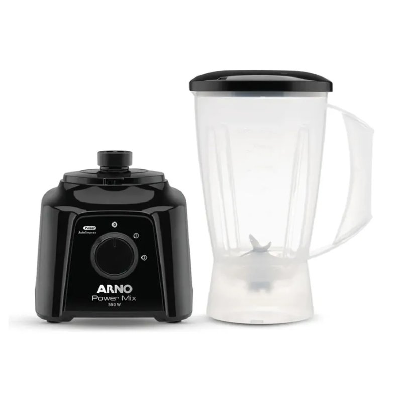 O Power Mix da Arno possui duas velocidades e função pulsar/autolimpeza com 500W de potência e conta com jarra de polipropileno com 2L de capacidade total e 1,25L de capacidade útil.