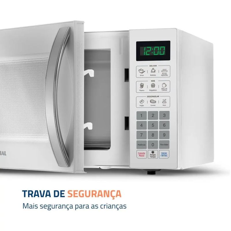 O Micro-ondas Branco da Mondial é sofisticado, eficiente e possui funções que facilitam sua vida na cozinha! Tem capacidade de 34 litros, 1.400W de potência, Display Digital e funções como Menu Dia a Dia, que oferece opções rápidas para refeições cotidianas, e Menu Kids, com receitas especiais para crianças. Oferece a flexibilidade necessária para cozinhar, aquecer e descongelar uma variedade de pratos, desde refeições rápidas até pratos mais complexos. É ótimo para preparar alimentos em pratos, recipientes e refratários. Com alta potência, você prepara e descongela seus alimentos com mais rapidez e eficiência, facilitando sua rotina diária. Prepare as receitas que você mais usa com apenas um clique, otimizando seu tempo. A praticidade de descongelar alimentos de forma rápida e fácil, com apenas um toque. Mantém seu prato na temperatura ideal até o momento de servir, garantindo sempre uma refeição quente e saborosa. Com 10 níveis de potência, você pode ajustar facilmente a intensidade para cozinhar, aquecer ou descongelar seus alimentos de forma eficiente.