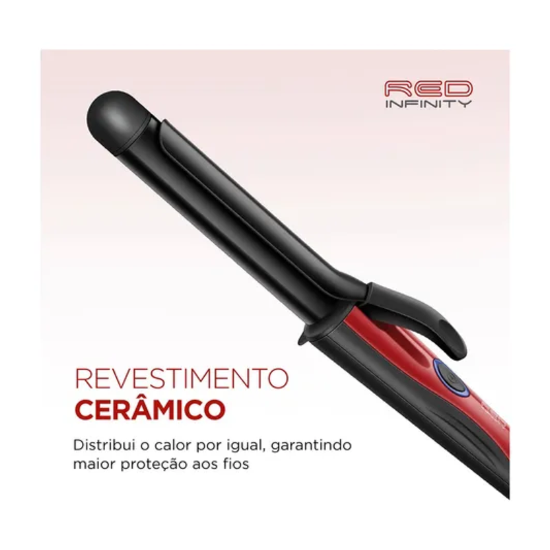A temperatura é de 210°C, bivolt automático e possui cabo de energia giratório, que gira 360º para total autonomia de movimento durante o uso.