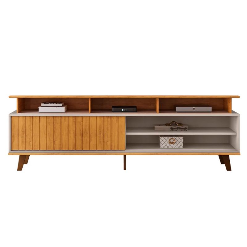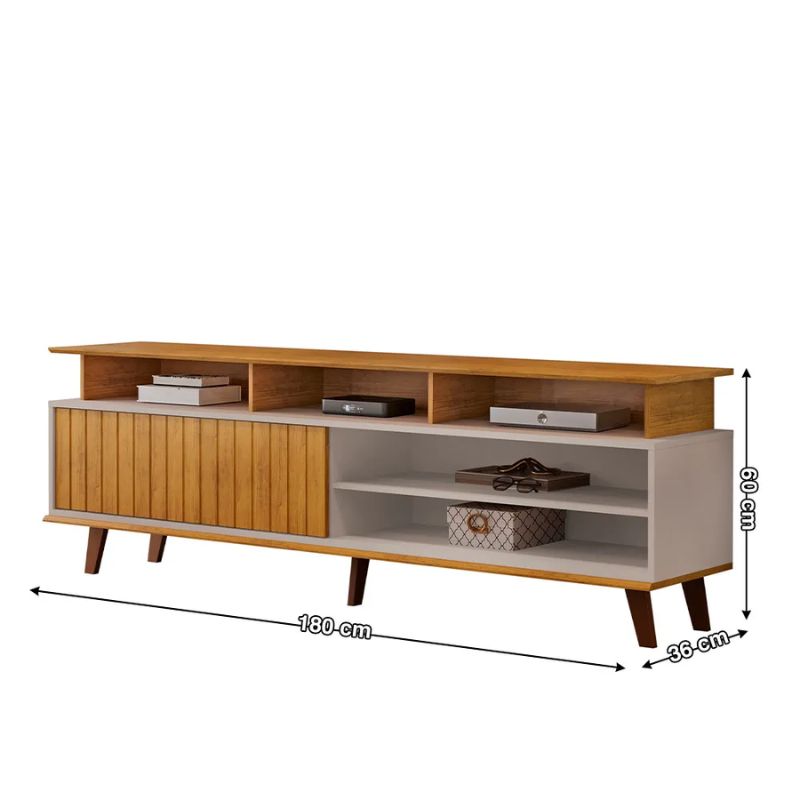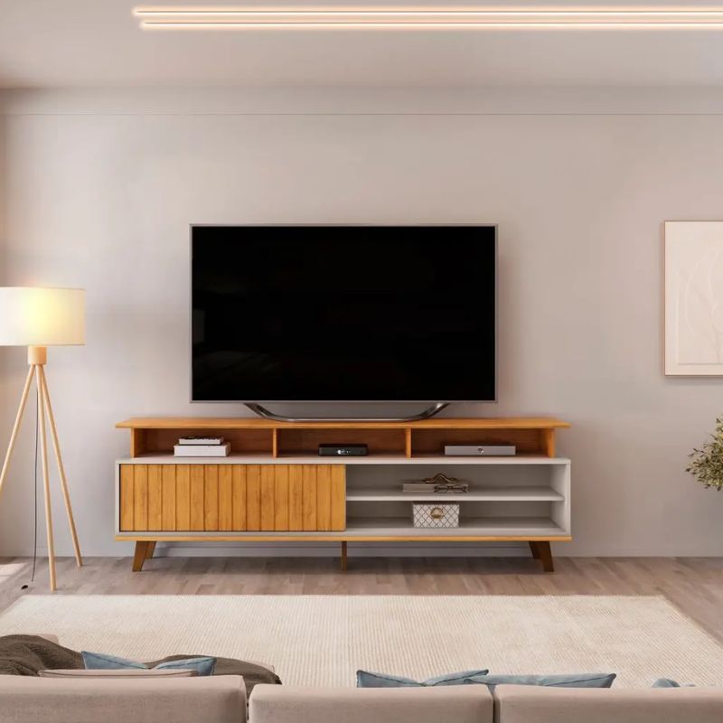 O Rack Flow combina elegância e praticidade com porta deslizante frisada, nichos para eletrônicos e espaço para TVs de até 70 polegadas. Seu design moderno, com tampo chanfrado e pés elevados, garante durabilidade e organização, contando ainda com passa-fios integrado. Produzido em MDF e MDP sustentáveis, é a escolha ideal para um ambiente sofisticado e aconchegante.