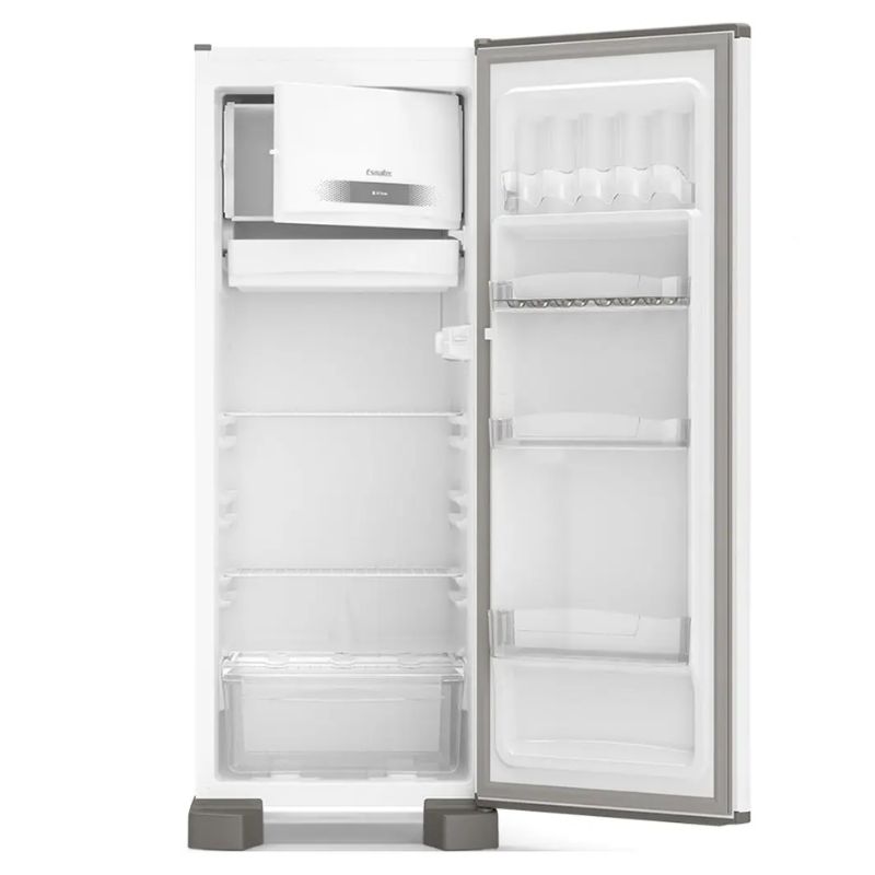 O Refrigerador Esmaltec 245L 1 Porta é perfeito para quem busca uma geladeira com eficiência energética e praticidade. Seu funcionamento é silencioso, estável e com consumo reduzido, ideal para o uso diário. Com classificação energética A++ e uso de gás ecológico R600a, o ROC31 PRO proporciona economia e contribui para a preservação do meio ambiente. A capacidade de 245 litros, com 27 litros dedicados ao congelador, atende bem às necessidades de quem precisa armazenar alimentos com organização e segurança. A gaveta de resfriamento rápido permite gelar bebidas e alimentos com mais velocidade. O interior conta com prateleiras reguláveis e removíveis, porta-latas, gaveta de legumes, porta-ovos e forma de gelo, garantindo aproveitamento máximo do espaço. A iluminação lateral interna facilita o acesso aos alimentos em qualquer hora do dia. Os pés com niveladores garantem estabilidade, enquanto o sistema de vedação destacável torna a manutenção mais simples e econômica.
