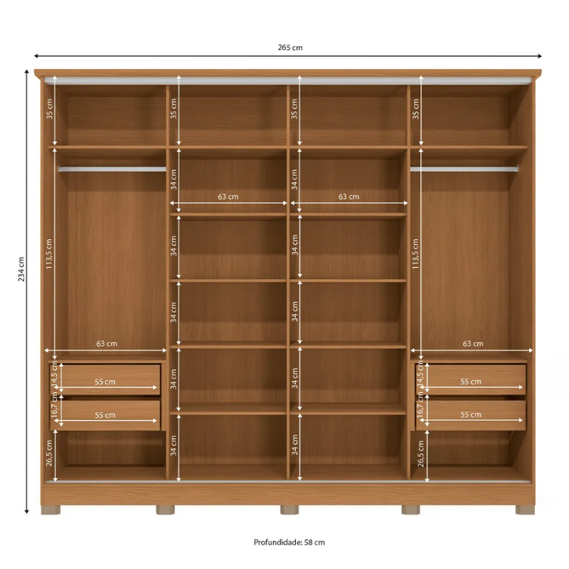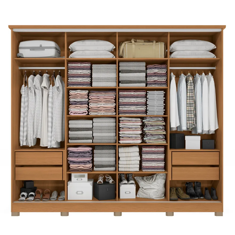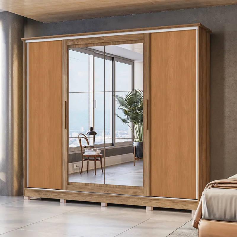 Roupeiro Kappesberg 4 Pts Correr E 4 Gav. Com Pes E Espelho Canela/Macadamia De Madeira – Cb01N565-Cnmc