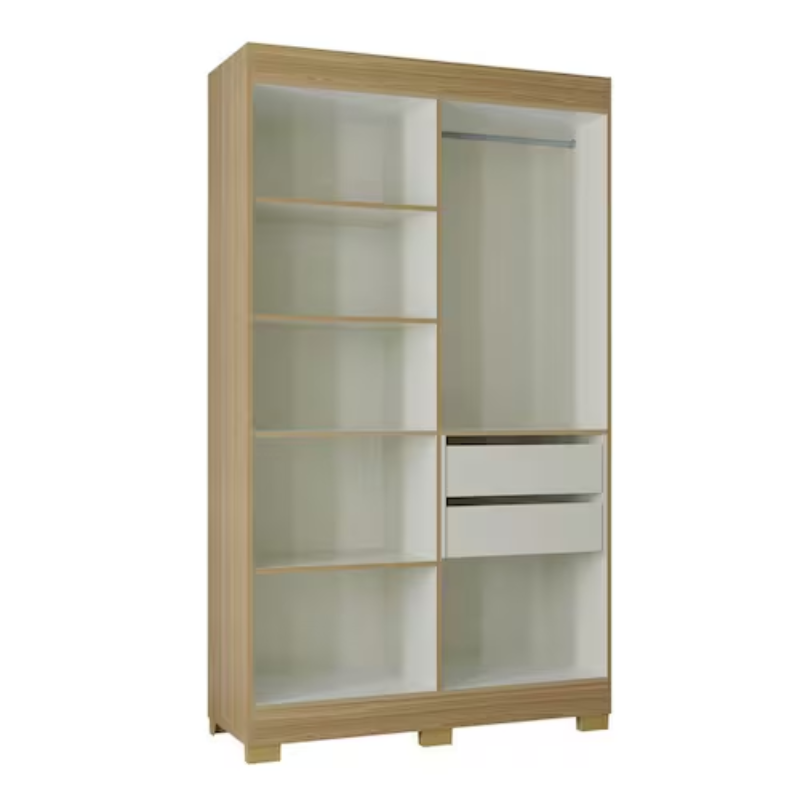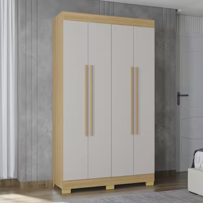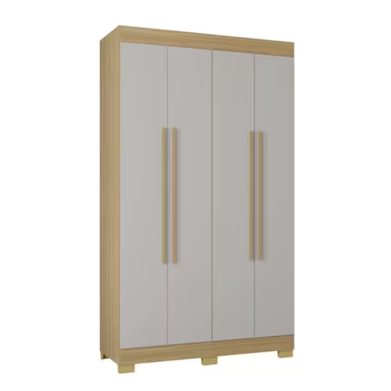 Guarda Roupa Solteiro 4 Portas com Pés Barcelona Poquema, é a escolha ideal para quem busca um excelente aproveitamento do espaço interno. Com gavetas que possuem corrediças metálicas e cabideiros funcionais, ele combina funcionalidade e estilo. Os puxadores em MDF completam o design, tornando o ambiente ainda mais aconchegante. Este modelo tem tudo o que o seu quarto precisa para se transformar em um espaço acolhedor e organizado!