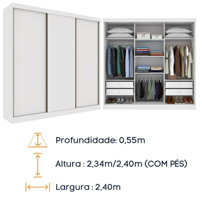 O Guarda Roupa Dacar é daquele tipo de peça que, além de ajudar na organização da rotina do dormitório, ainda deixa ele muito mais agradável e com uma decoração moderna. A estrutura prateleiras para os acessórios pessoais e roupas que precisam ficar dobradas. Possui cabideiros para roupas mais compridas ou que amassam fácil.