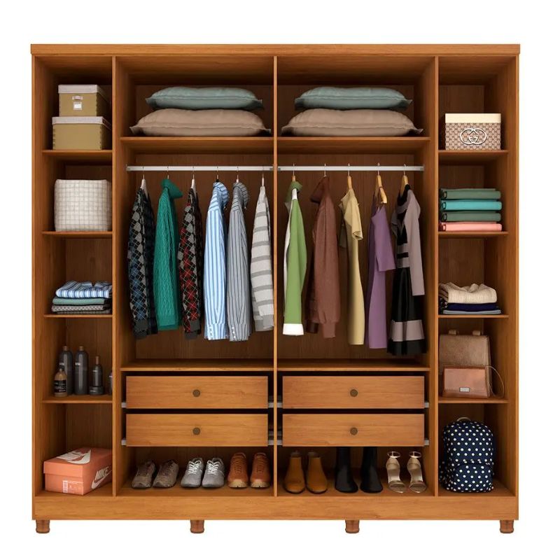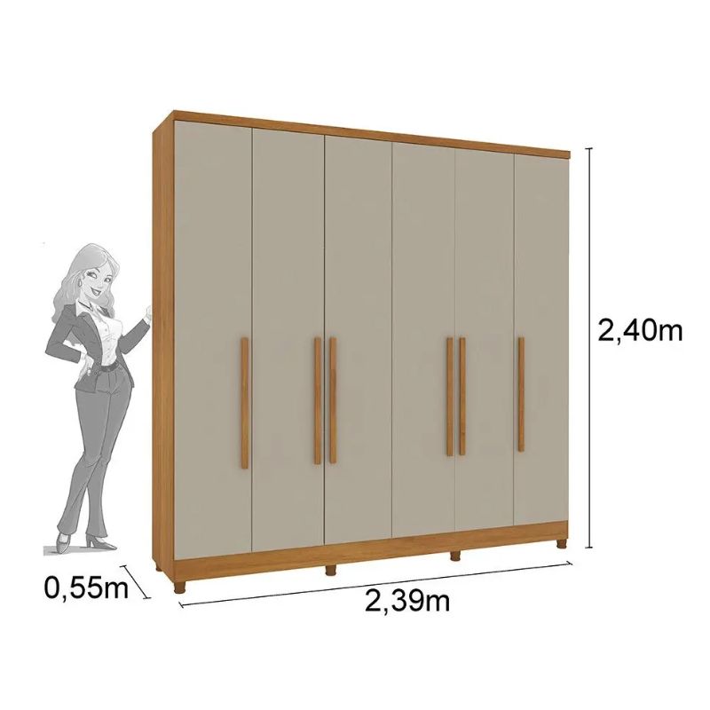 O Roupeiro Veneza é produzido com madeira proveniente de reflorestamento em MDP proporcionando ao produto uma ótima durabilidade, possui quatro gavetas internas com um amplo espaço interno e uma melhor fixação, proporcionando maior conforto e comodidade em guardar suas roupas. As corrediças telescópicas oferecem um melhor deslizamento ao abrir as gavetas e sem contar com a durabilidade da mesma, suas prateleiras possuem um ótimo espaçamento interno onde você poderá colocar e organizar todos seus objetos, e ainda possui dois maleiros onde você pode guardar e organizar suas roupas de cama. Dois cabideiros em alumínio para você colocar as roupas mais sensíveis e que precisam de um maior cuidado, com seis portas e suas dobradiças metálicas que ajudam em sua durabilidade e auxiliam em sua abertura, e os puxadores são amadeirados garantindo assim uma ótima resistência e vida útil de seu puxador.