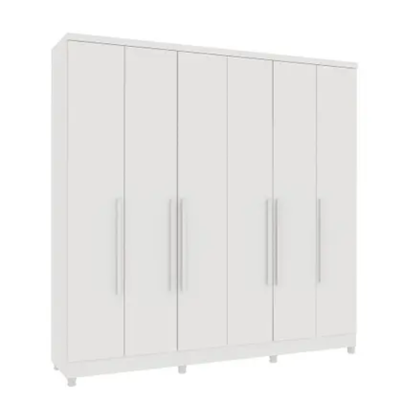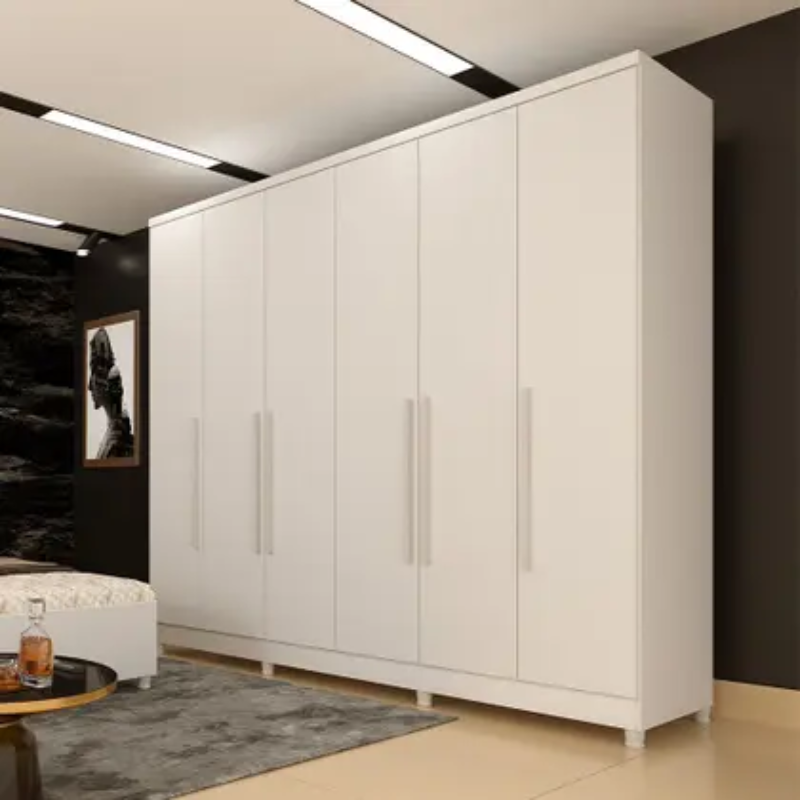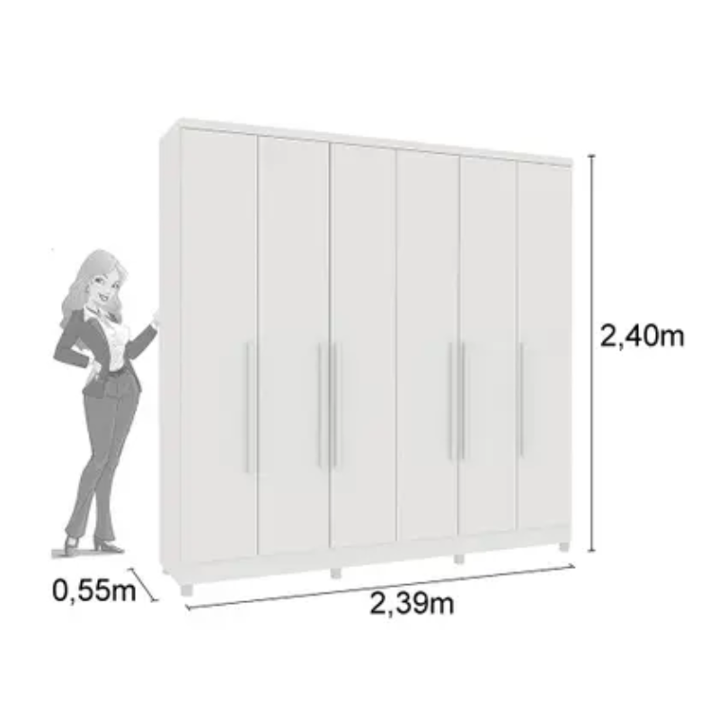 Dois cabideiros em alumínio para você colocar as roupas mais sensíveis e que precisam de um maior cuidado, com seis portas e suas dobradiças metálicas que ajudam em sua durabilidade e auxiliam em sua abertura, e os puxadores são amadeirados garantindo assim uma ótima resistência e vida útil de seu puxador.
