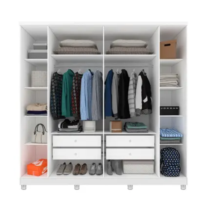 O Roupeiro Veneza é produzido com madeira proveniente de reflorestamento em MDP proporcionando ao produto uma ótima durabilidade, possui quatro gavetas internas com um amplo espaço interno e uma melhor fixação, proporcionando maior conforto e comodidade em guardar suas roupas.