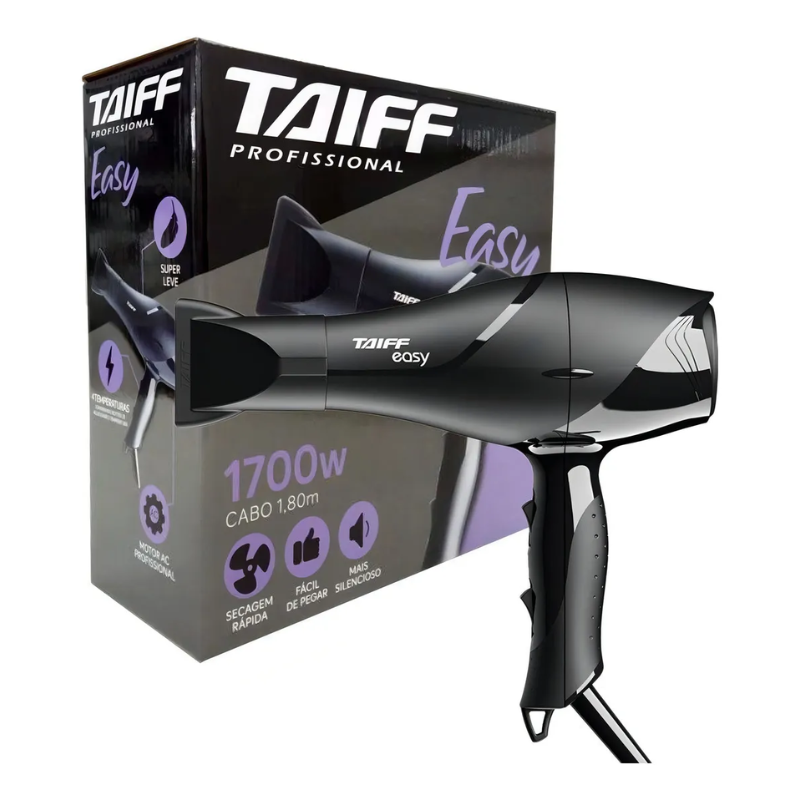 Mantenha o controle de seu cabelo em suas mãos com o Secador de Cabelos Taiff Easy. Potente, reúne 1700W e o Motor AC Profissional que proporciona uma secagem rápida, eficiente, com qualidade profissional para uso pessoal.