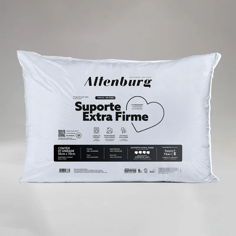 Experimente o Travesseiro Altenburg Suporte Extra Firme, ideal para quem busca um travesseiro firme sem abrir mão do conforto. Conhecido popularmente como o “travesseiro do coração” este travesseiro é especialmente indicado para quem dorme de lado, este travesseiro possui revestimento em percal 180 fios, 100% algodão, oferecendo um toque suave e aconchegante.